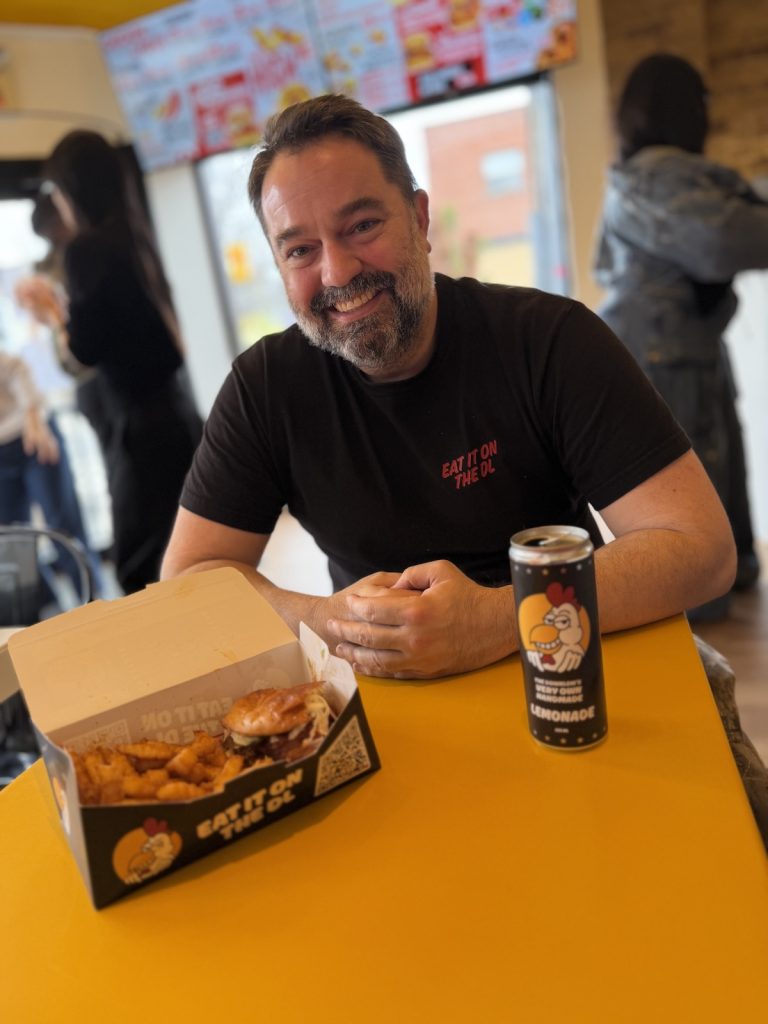 I’m having my very own Hot Ones moment, chatting with DL (Down Low) Chicken founder, and Toronto native, Doug Stephen. Glancing down at my phone’s recorder, I see that Y Not Italian! autopopulates the location data at 538 Manning Ave, and I realize I’ve been here before, and the homey neighborhood italian favourite is no longer. But there are no sour grapes, the former owner took a sunset cruise into retirement, opening up a perfect opportunity for the hugely successful Van City chicken chain that slings out chicken sandos with both Italian (sautéed peppers and fennel sausage inspired spice), French-style with a root veg gravy, and fried chicken and waffles made from a savoury mashed potato batter (I think?)